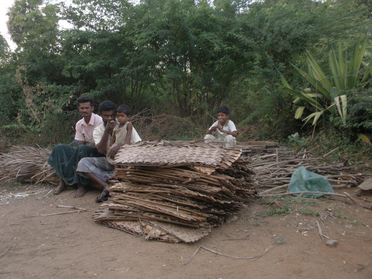 Toepassing van gevlochten palmbladeren in huttenbouw